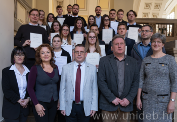 A dékáni tanácsteremben november 4-én, kedden rendezett ünnepségen vehette át oklevelét a Debreceni Egyetem Bölcsészettudományi Kar 23 hallgatója, akik idén Nemzeti Felsőoktatási Ösztöndíjban, valamint a kar Kiemelt szakmai ösztöndíjában részesültek. A nyertesek egy tanéven át kapnak külön juttatást.